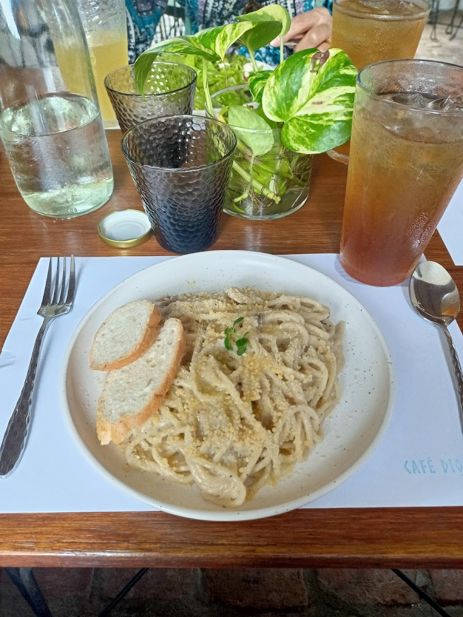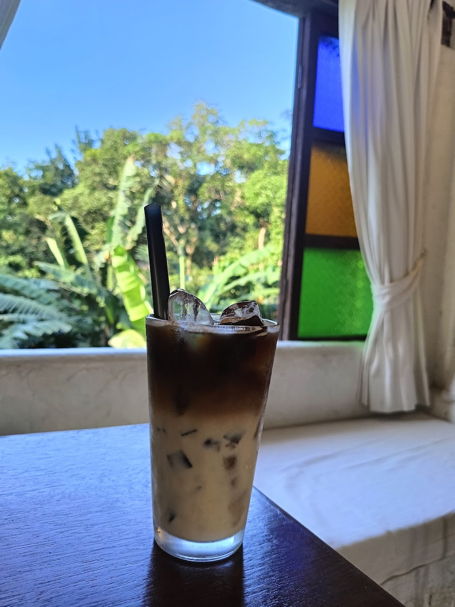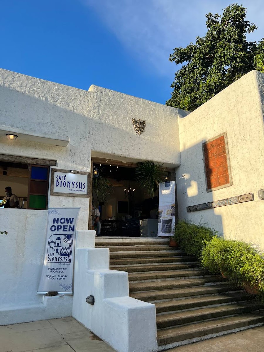 Café Dionysus is a relaxed café nestled on the second floor of the White building inside Pinto Art Museum in Antipolo, offering a mellow spot to unwind after exploring the art galleries. Its Mediterranean-inspired architecture, complete with vintage glass windows and a garden-like setting, creates a quiet nook reminiscent of a coastal village, providing a pleasant view of the museum grounds below.